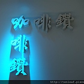 牆上的咖啡鑽隨著燈光不斷地變換顏色,