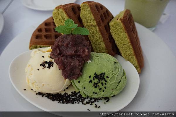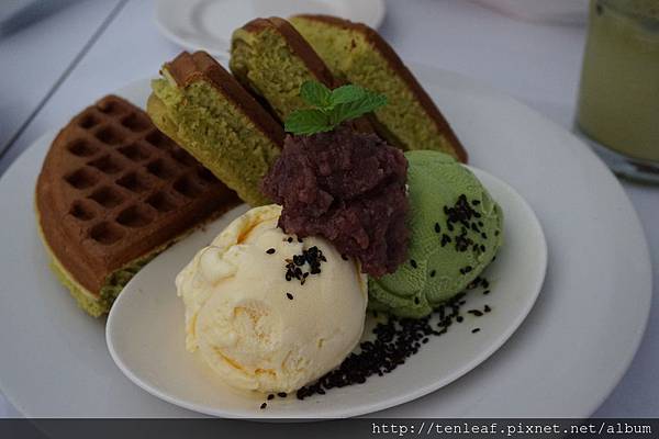 鬆餅有加入抹茶粉但香氣沒有很明顯,