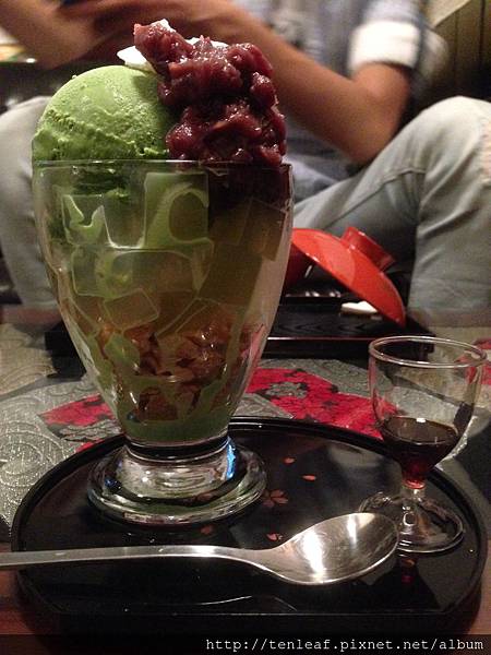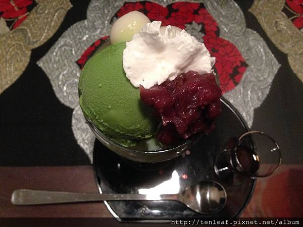 綿密的紅豆泥加上抹茶冰淇淋再搭一點點鮮奶油,