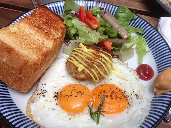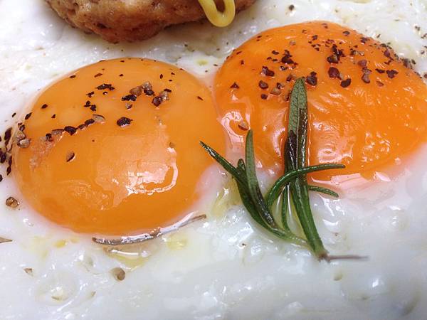 迷迭香煎的金黃有機太陽蛋香噴噴,