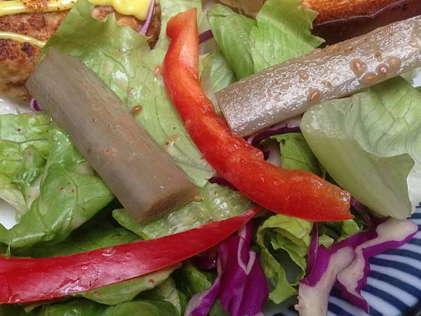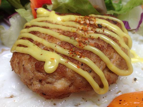 低脂豬肉混手工板豆腐的漢堡排很juicy,