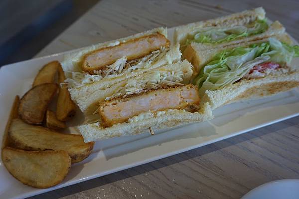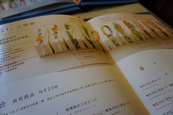 三明治口味有水果、鮪魚沙拉、煙燻雞肉、炸蝦排、可樂餅五種,