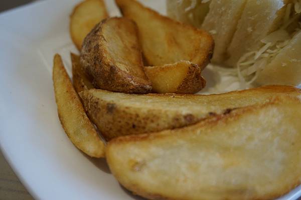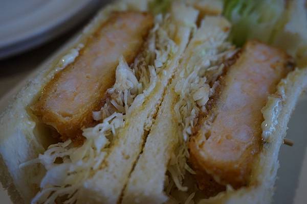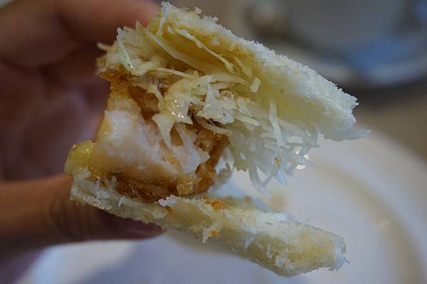 麵衣很酥脆搭配高麗菜絲降低油膩感。