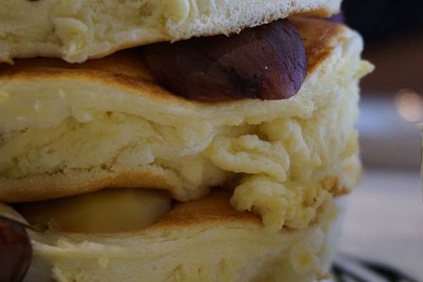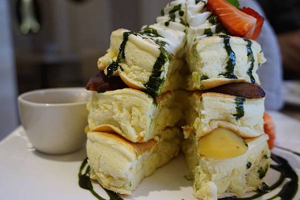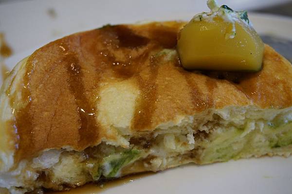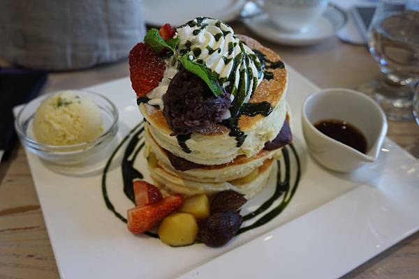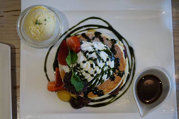 除了鬆餅本體外還附了焦糖以及香草冰淇淋。