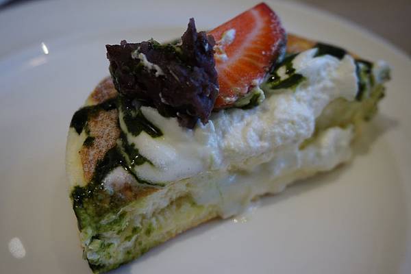 第一層直接就著上頭的鮮奶油及紅豆泥一併送入口中,