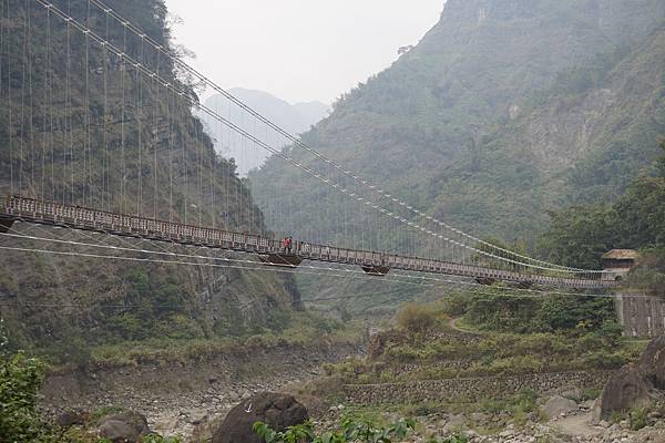 達娜伊谷吊橋位在曾文溪與達娜伊谷溪的交匯處,過了吊橋底端通往鄒族家屋,一旁達娜伊谷步道,或許是時間已晚,往裡面走的人不多。差不多該去民宿check in了,GOGO~