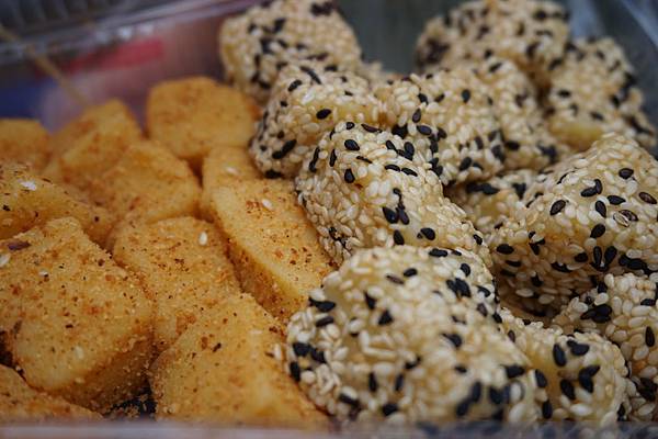 表演結束往後山走,沿途賣一些小吃。又見到烤肉了,下面沒擋起來更有fu,買了小米麻糬,顏色黃黃的很像布丁,吃起來又軟又Q。芝麻比較偏向原味,咬的時候帶點淡淡的芝麻香喀擦喀擦;花生一向是我的愛,表面裹了層薄薄的花生粉香氣倍增。