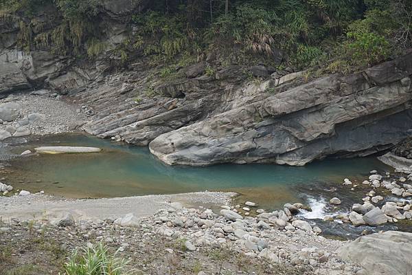 走到底是美麗的山谷,下到溪底有些石頭上還有未乾的青苔,溪水綠的不可思議,仔細看可以看到一條條帶著細細鱗光的小魚,不曉得是不是大名鼎鼎的苦花。
