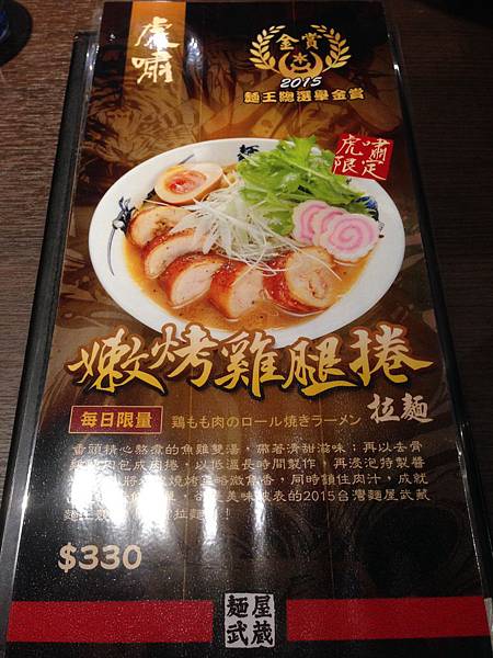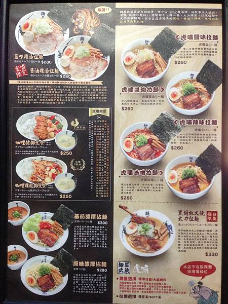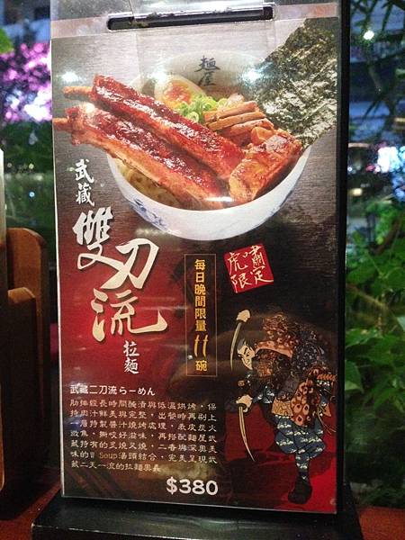 除了菜單上的固定款式外,虎嘯會定期推出限定菜單,所以不要忘記翻翻桌上的小立牌。不來虎嘯則已,來了當然要點最招牌的武藏雙刀流拉麵啦,而且每天晚上限量11碗。