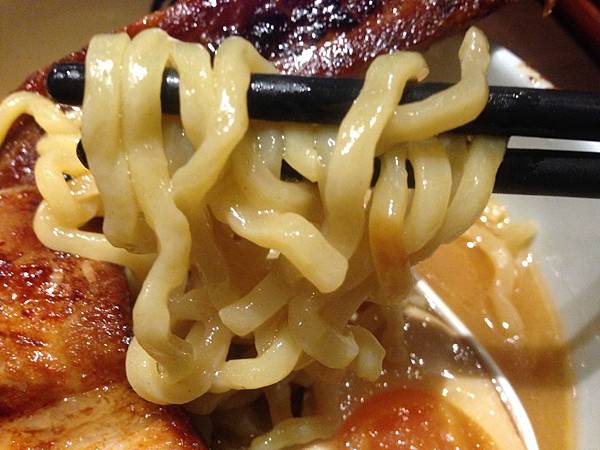 麵條在點餐的時候就可以選擇Q的還是軟的,還可選是否要加麵(無料),一旦開吃就無法再加麵囉。光看照片的感覺應該不難猜出這碗是彈牙系口感,麵條是目前吃到最Q最扎實的,吃到後面腮幫子都酸了。