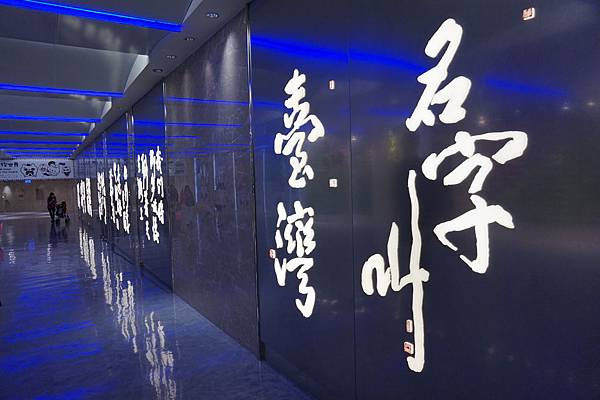 往登機門的路上,這面寫著台灣的牆是機場美麗的風景。