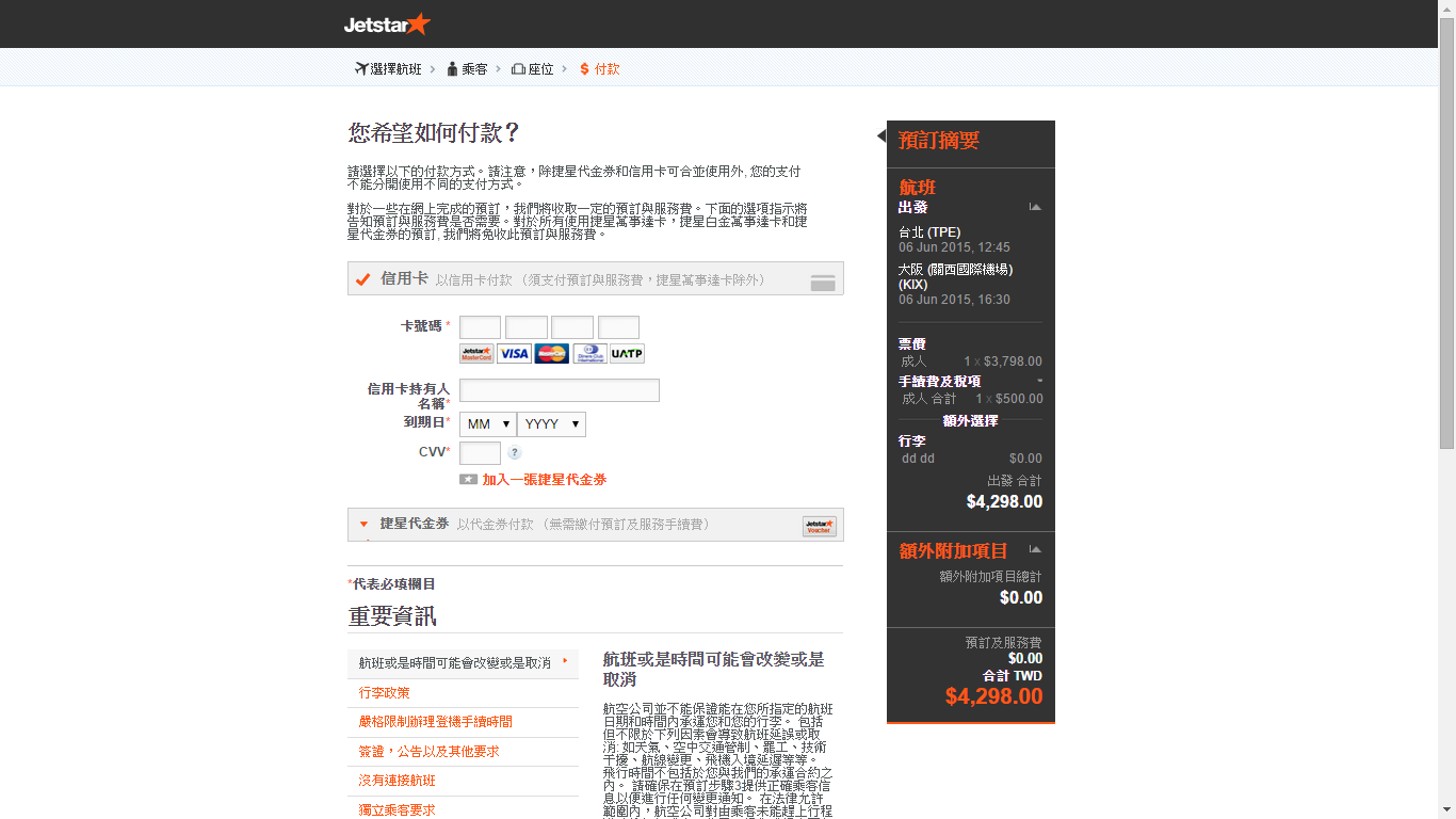 最後的最後要付錢啦!!!確認完右邊黑框裡的各單項計價後,就豪爽的把卡號key進去吧。