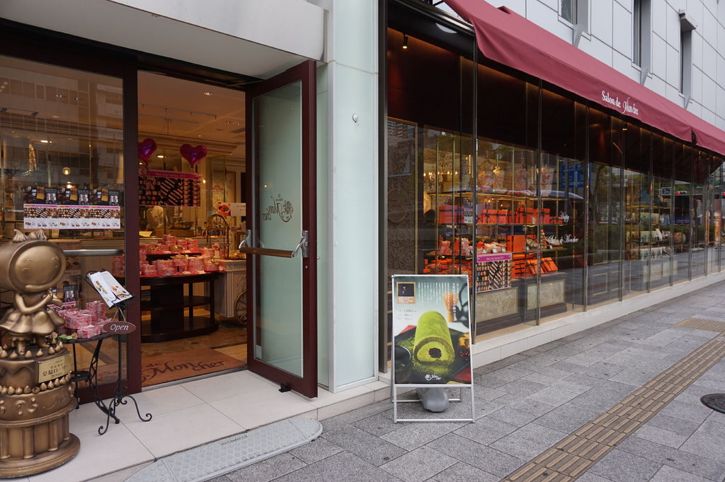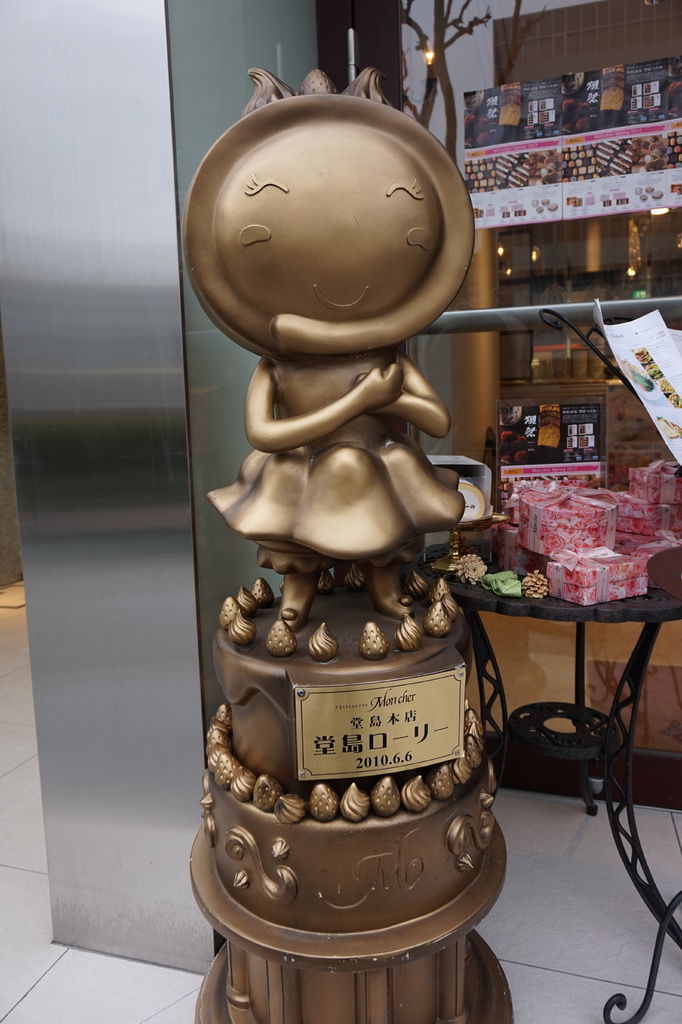 店面頗大間,但少了公仔我想我應該認不出來是堂島ロール,一整面櫥窗擺放招牌的橘色紙盒,門口的季節限定天竜抹茶紅豆泥捲早就賣到不見卷影。