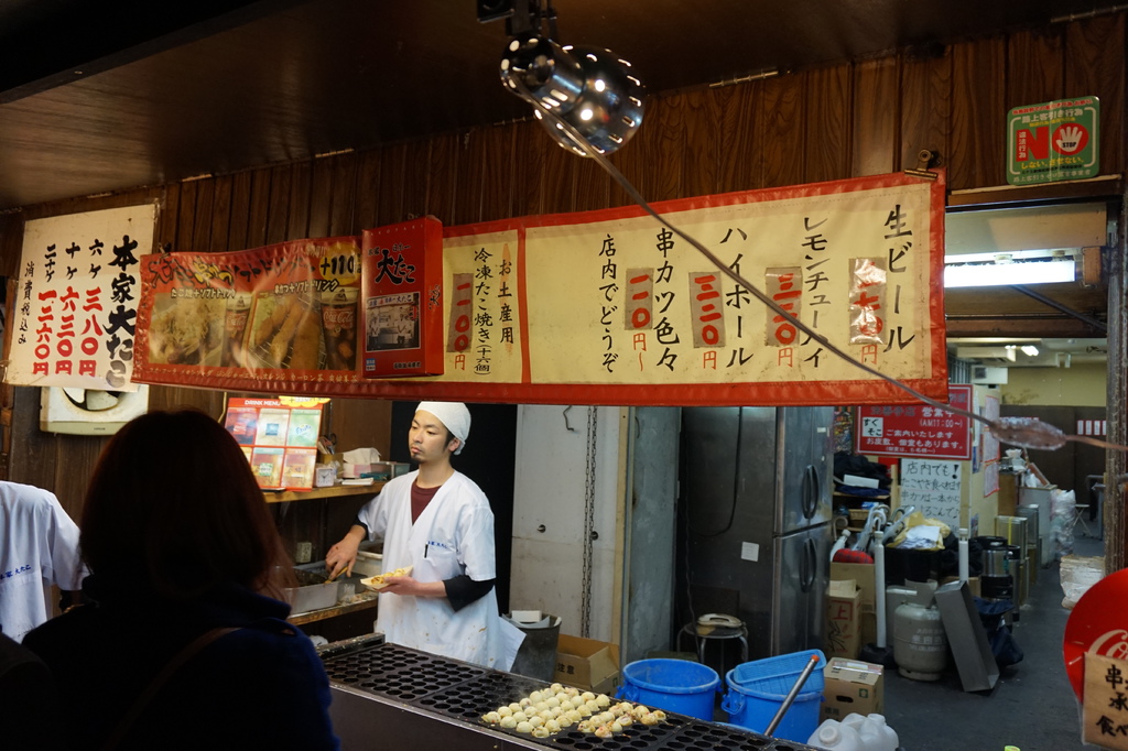 隊伍前進的很快,六顆380円(稅入)還蠻便宜的。考章魚燒的小哥頗帥,還留好有日本味的小鬍子。