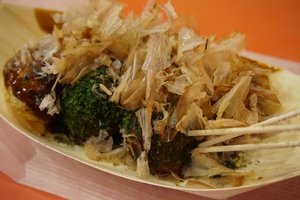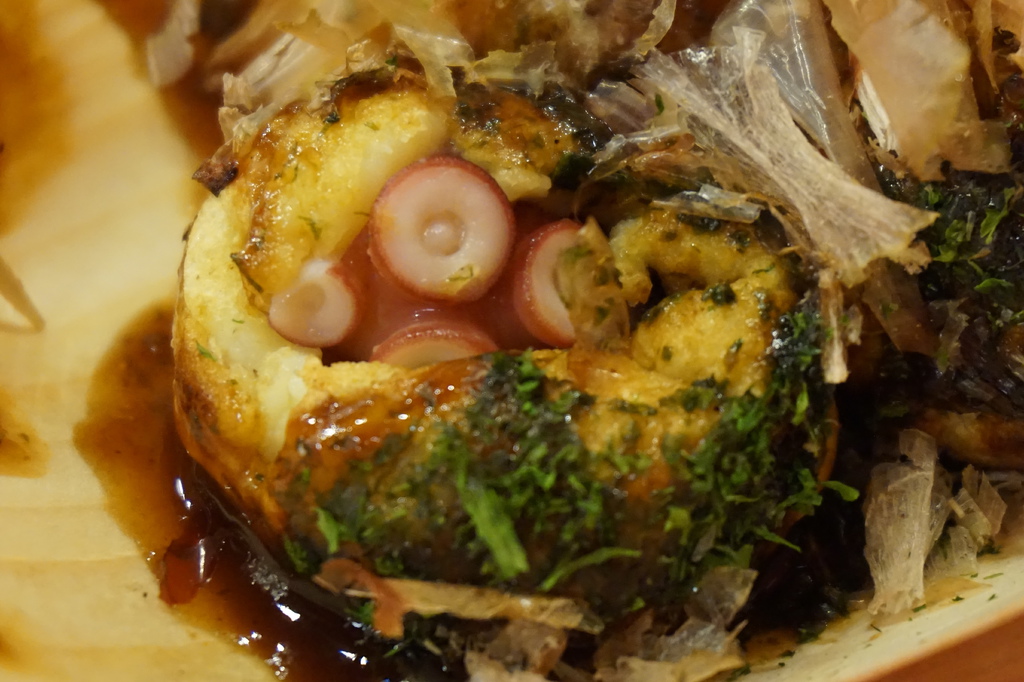 稍早趁著旅伴還在排金龍拉麵的同時,跑到旁邊一樣很多人的本家章魚燒排隊,身邊的朋友對日本章魚燒的評價普遍不是挺好,反而讓我更想試試看了。