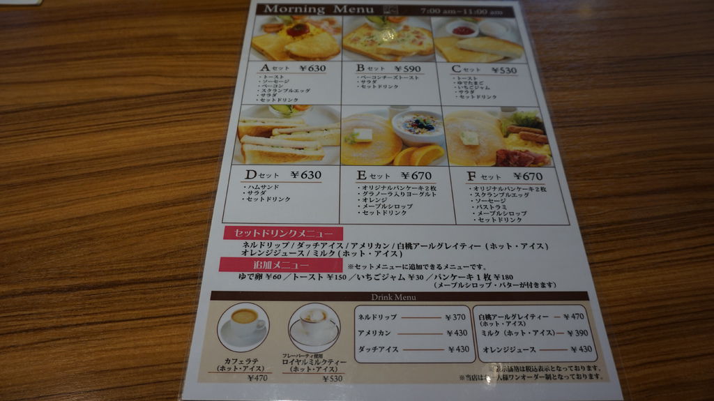 早餐menu完全看唔,總之就是像圖片那樣吧,套餐還有含一杯飲料。