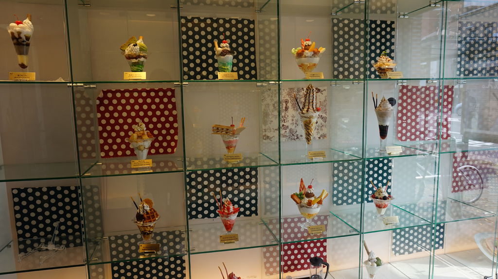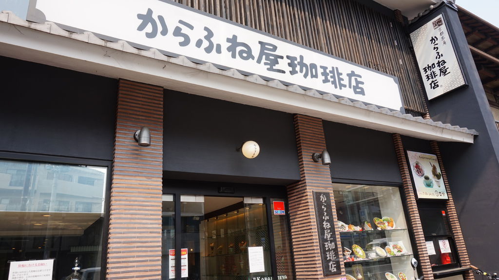 からふね屋珈琲店位在熊野神社的公車站旁,吃完早餐就可以直接出發很方便,一進門兩面櫥窗擺滿了超漂亮的芭菲模型,不過一早吃這麼應該會爆腦血管吧...