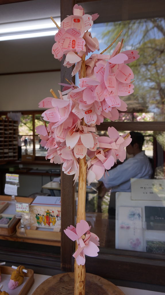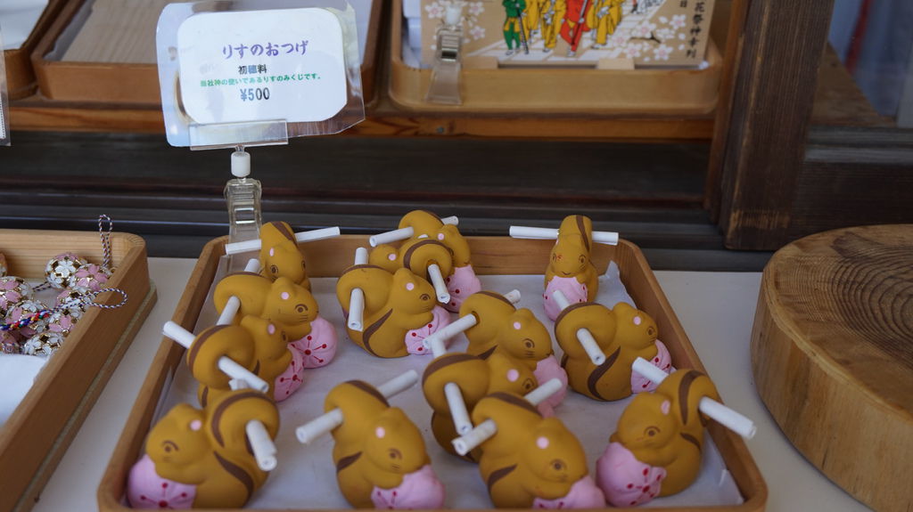 平野神社連籤都是櫻花的形狀也太夢幻了吧,綁在枝椏上彷彿是棵盛開的迷你櫻花樹;另外有松鼠造型的御神籤,抽完籤後還可以把松鼠帶回去蒐藏。