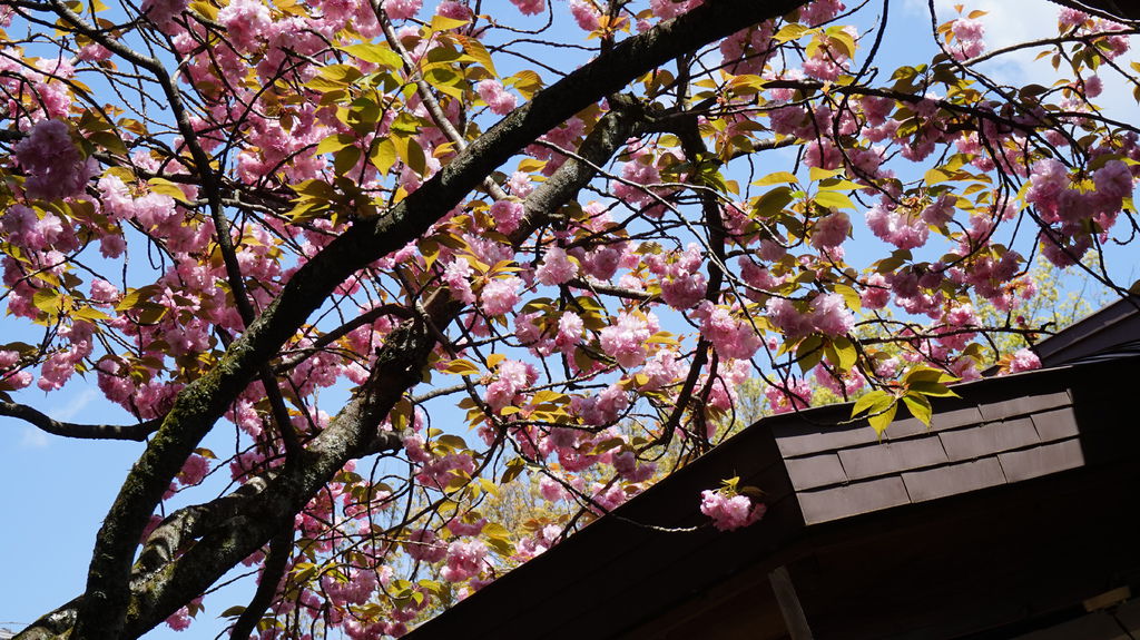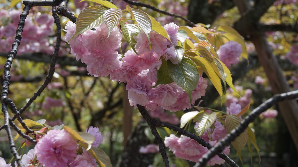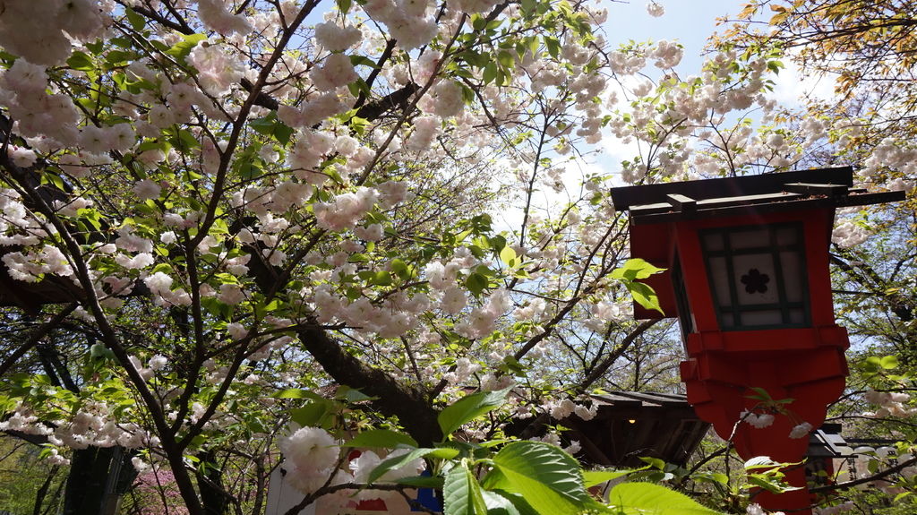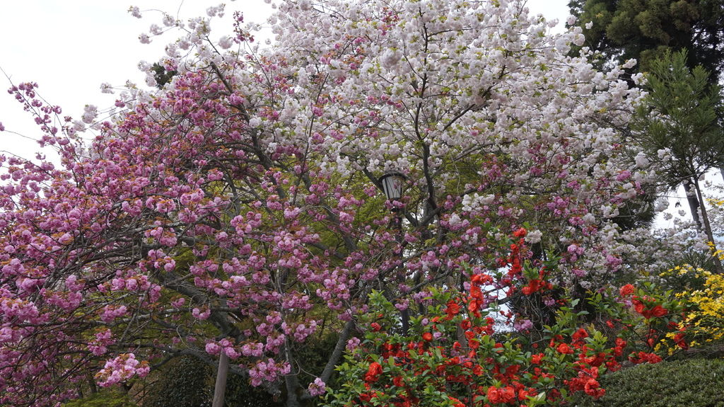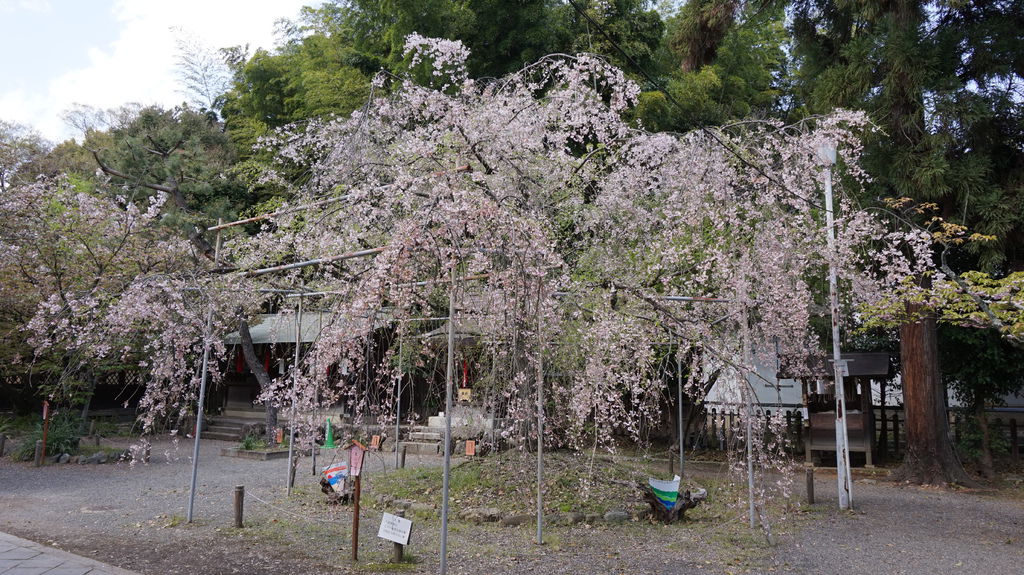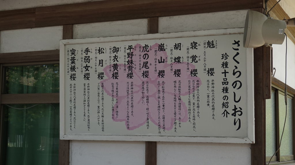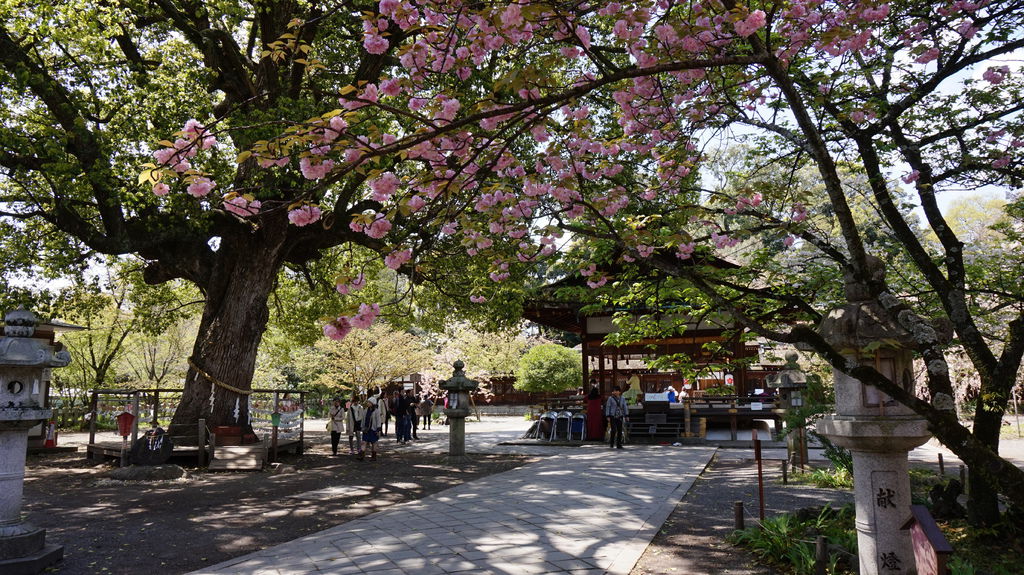 神社內櫻花遍佈,多數都還盛開的非常美麗,品種總共有十種,每一種各有各的姿態,旁邊還有說明開花的時間,魁櫻就已經見傾了。