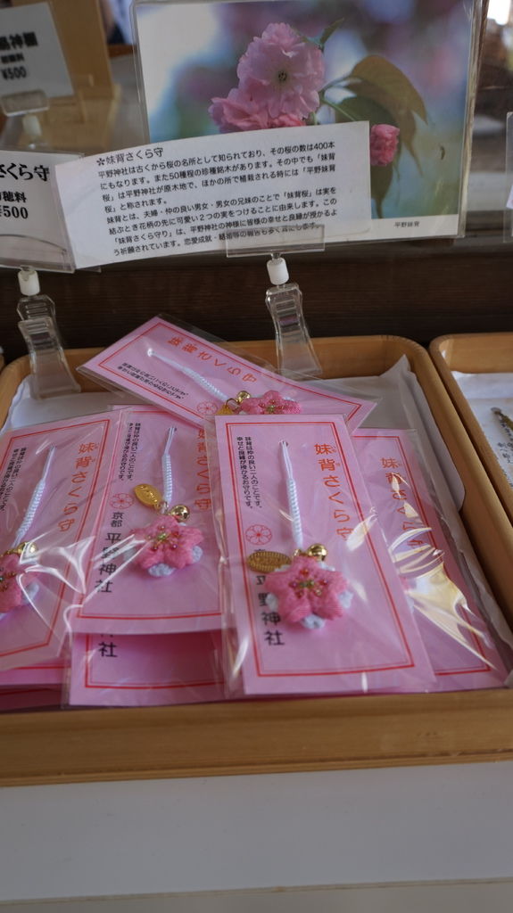 平野神社只要守護生產平安,不過家裡最近沒人要懷孕...另外美麗的櫻花御守是以平野神社的代表櫻花『平野妹背櫻』為原型,妹背意指感情很好的戀人,所以是守護戀情的感情御守。