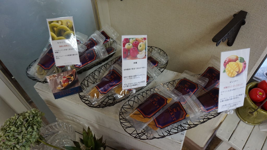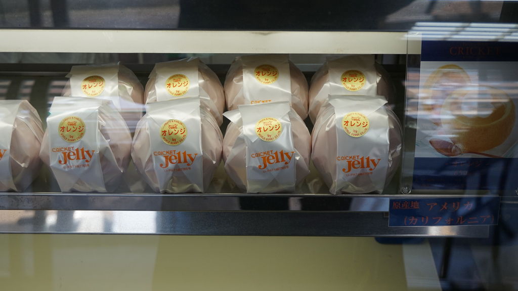 CRICKET位在平野神社的斜對面,橘色的招牌跟大隻的蚱蜢很好認,主打是招牌上那顆橘子~做成的果凍。