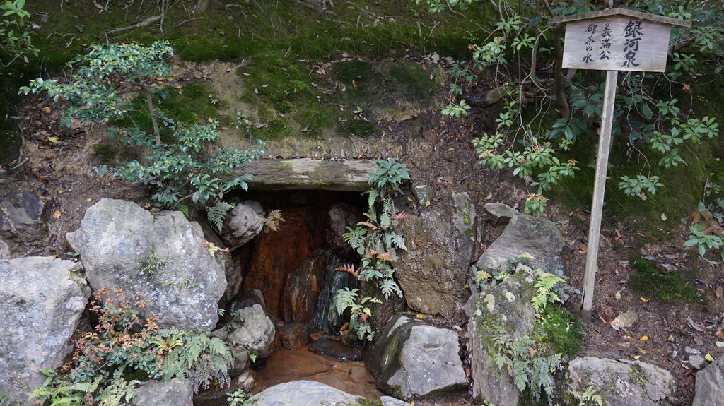 銀河泉所湧出的泉水,據說是足利義滿煮茶專用泉水(現已乾枯),另一旁有洗手專用的嚴下水,銀河泉及嚴下水和稱義満縁之泉。