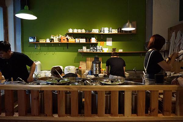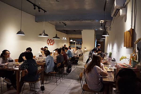 廚房就在進門左手邊,蠻特別的規劃,隔著欄杆看到一桶又一桶的鋼桶裝的正是每日特選湯品,湯品的名稱會掛在櫃檯上方的小黑板上。不知道是不是食尚玩家介紹過的關係,下午五點半店內已座無虛席,在候位區等了一會兒,持續不斷接受香味的攻擊,太卑鄙了啦。