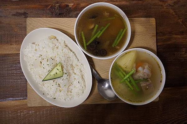 SET1:多種菇牛菌菇湯、 鳳梨苦瓜軟骨湯+蔬菜炊飯 (NT 220)
