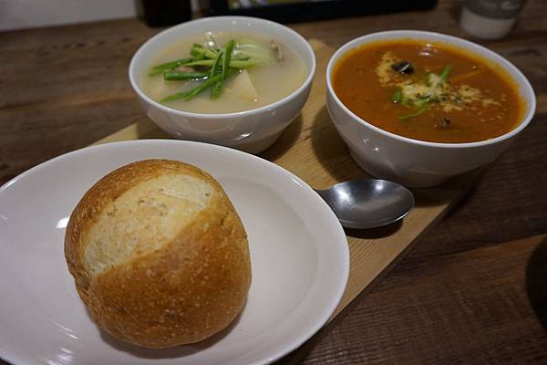 分量看起來少少的,但吃完一整個撐,後悔貪吃多點了一顆麵包。味道都很不賴,即使打底用的高湯相同也不會讓人有湯品重複的錯覺,或許是為了要搭飯或麵包的關係,湯普遍偏鹹,常常要一直喝水才不會覺得吃完可能要高血壓。網路上有些針對服務的負評,這次去沒遇到無感,不過店員都還蠻客氣的,是會讓人想再回訪的好味道。