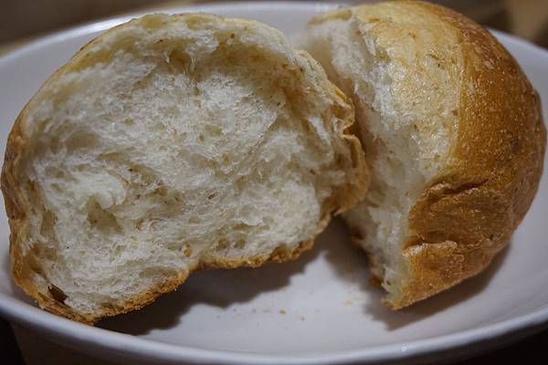 SETS的手工麵包選法式酥脆麵包(棕色),外脆內軟沾濃湯很適合;另外有再加點一份日式鬆軟麵包(白色),非常的柔軟可口,但沾湯汁一下子就糊掉了,比較適合一口湯一口麵包的吃法。
