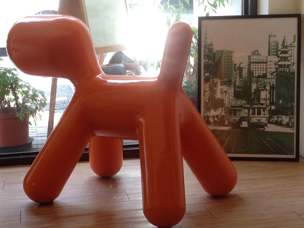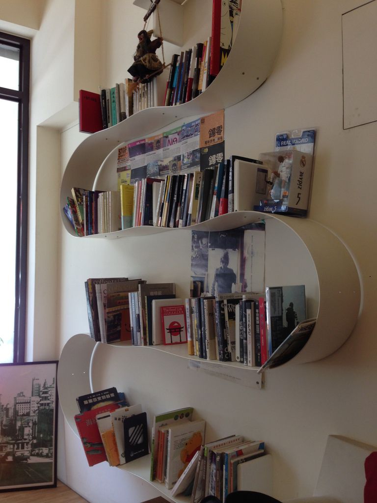 推開大門左手邊是一整面的書櫃,小說、遊記、美食都有,書的類別蠻雜的,很適合挑一本書靜靜度過一個下午,落地窗前是一隻好大的橘色狗狗(?)。