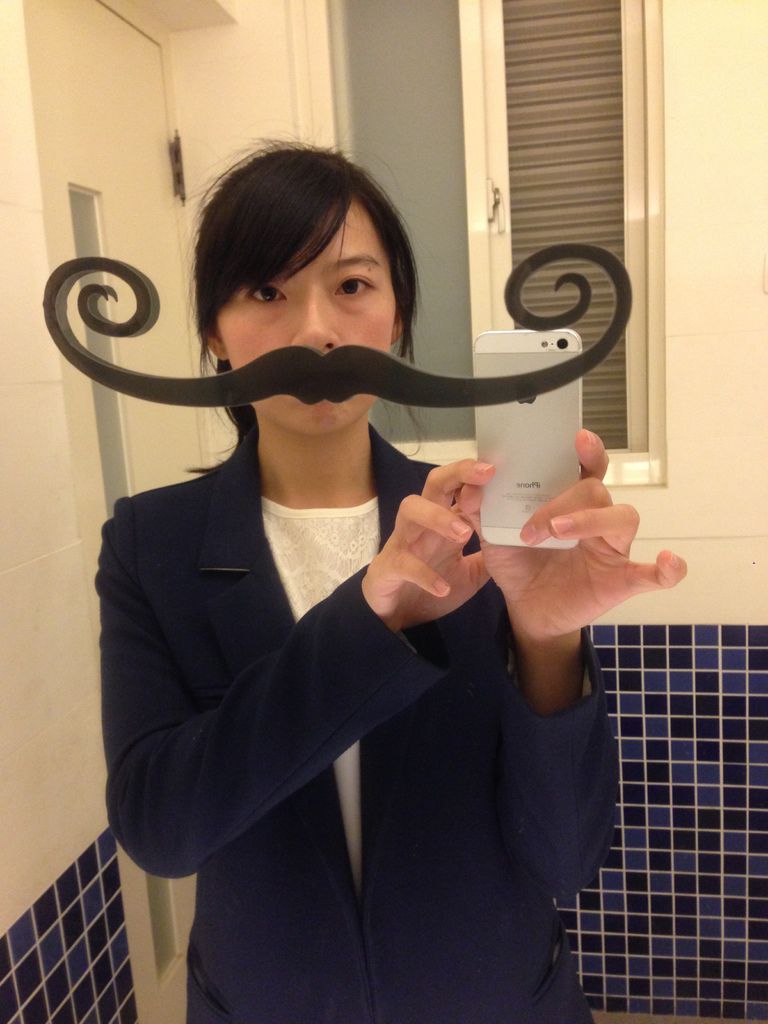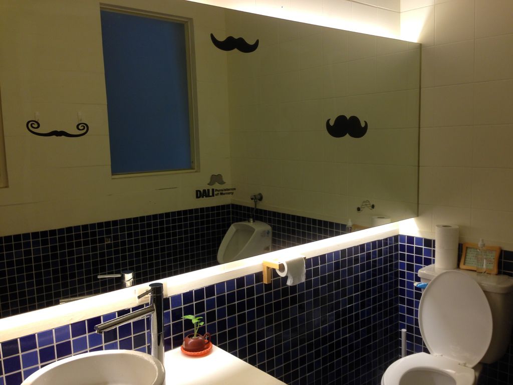 廁所鏡子上有可愛的鬍子,有些太高了搆不到...挑了一個很華麗的翹鬍子,似乎也蠻帥的嘛,哈